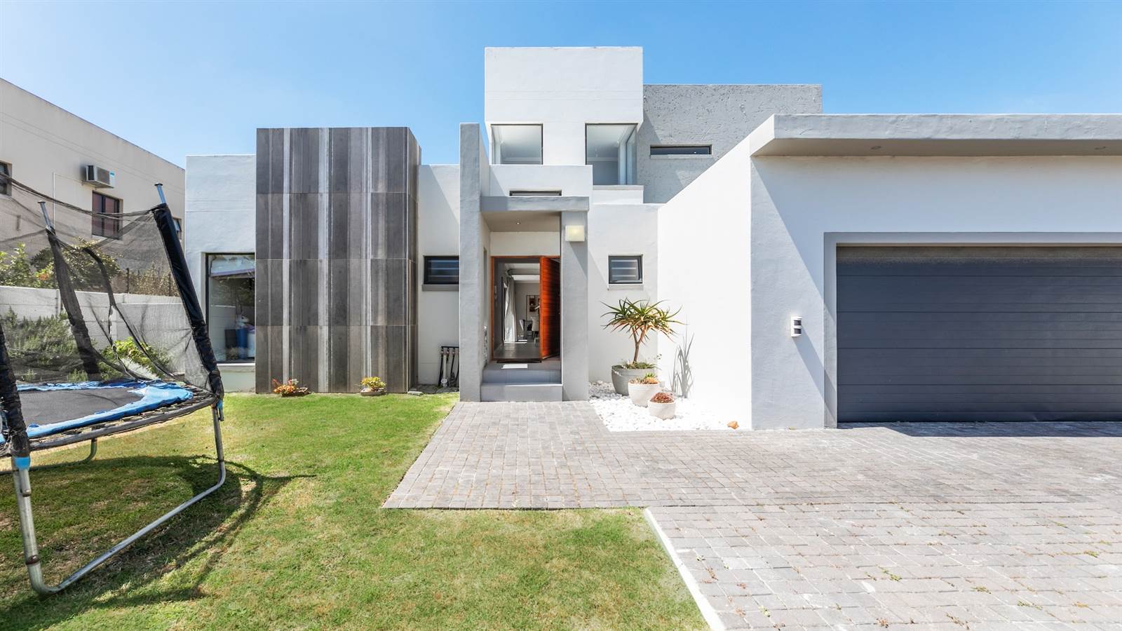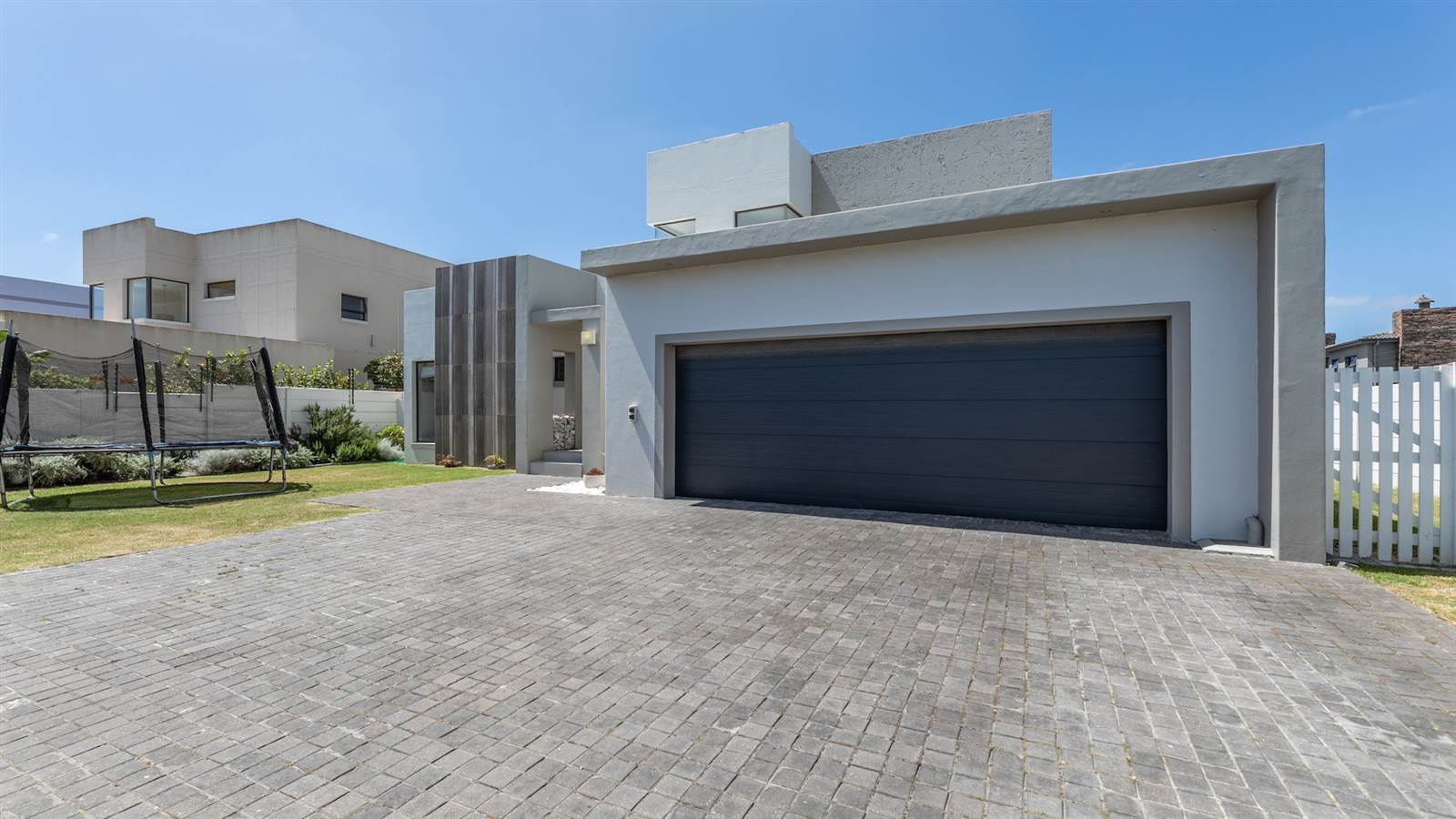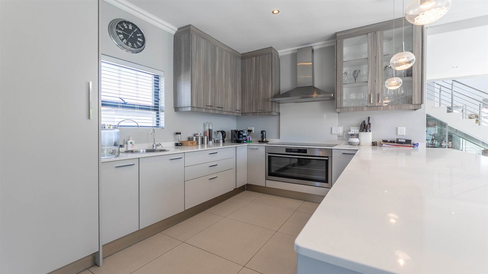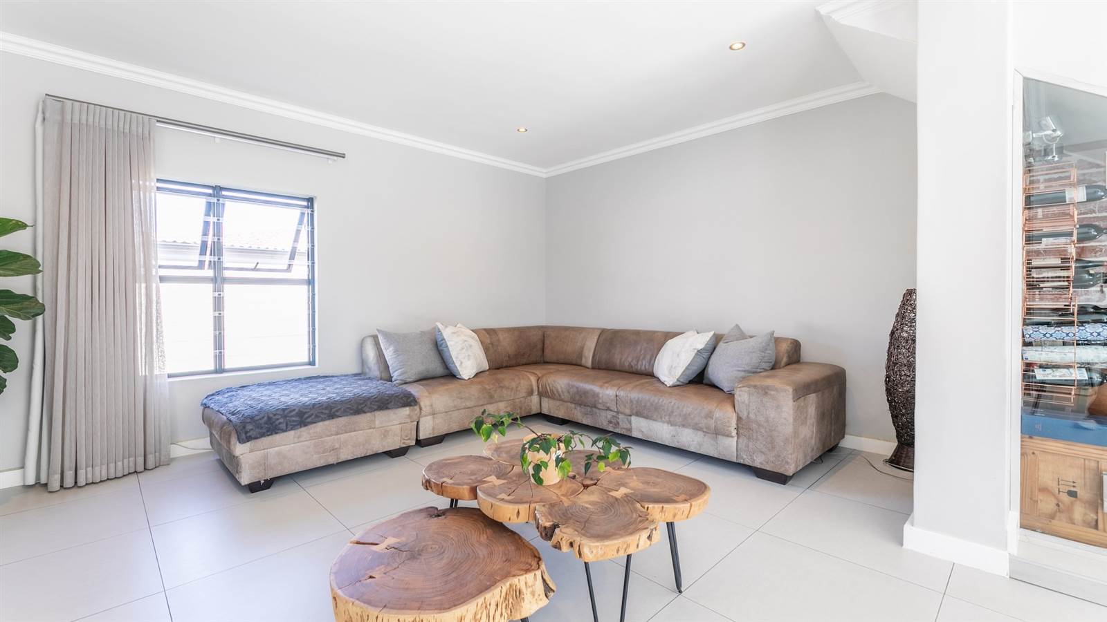 The expansive open-plan living spaces seamlessly merge with the outdoor entertainment area and sparkling pool, creating a captivating setting for hosting guests. A separate and enclosed braai room, complete with a state-of-the-art pizza oven, caters to the desires of even the most discerning barbecue connoisseur, setting the stage for delightful home gatherings with loved ones.