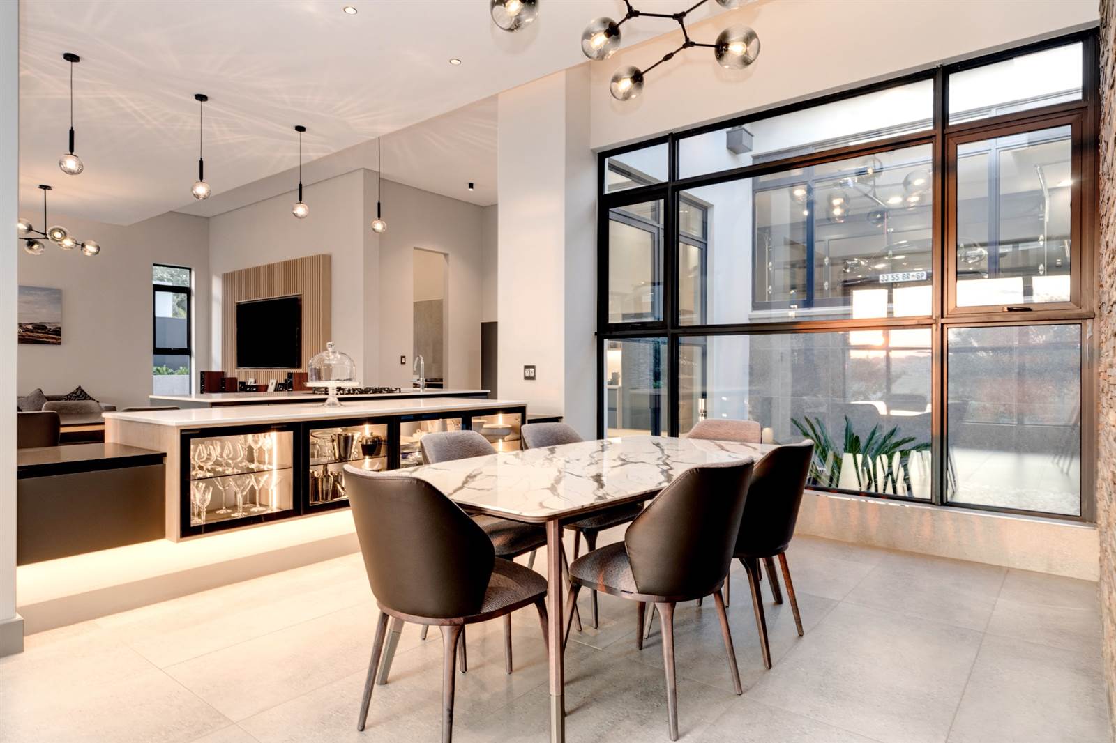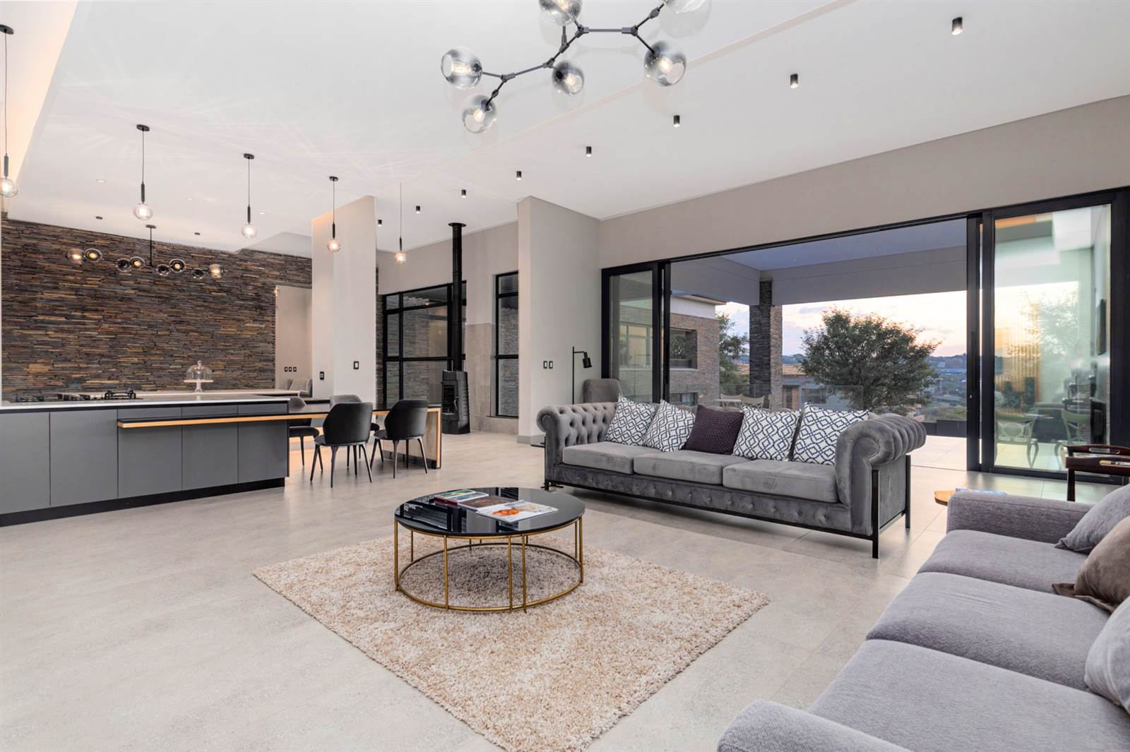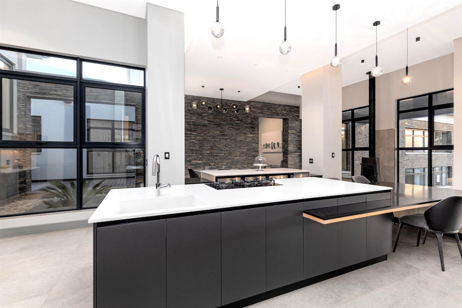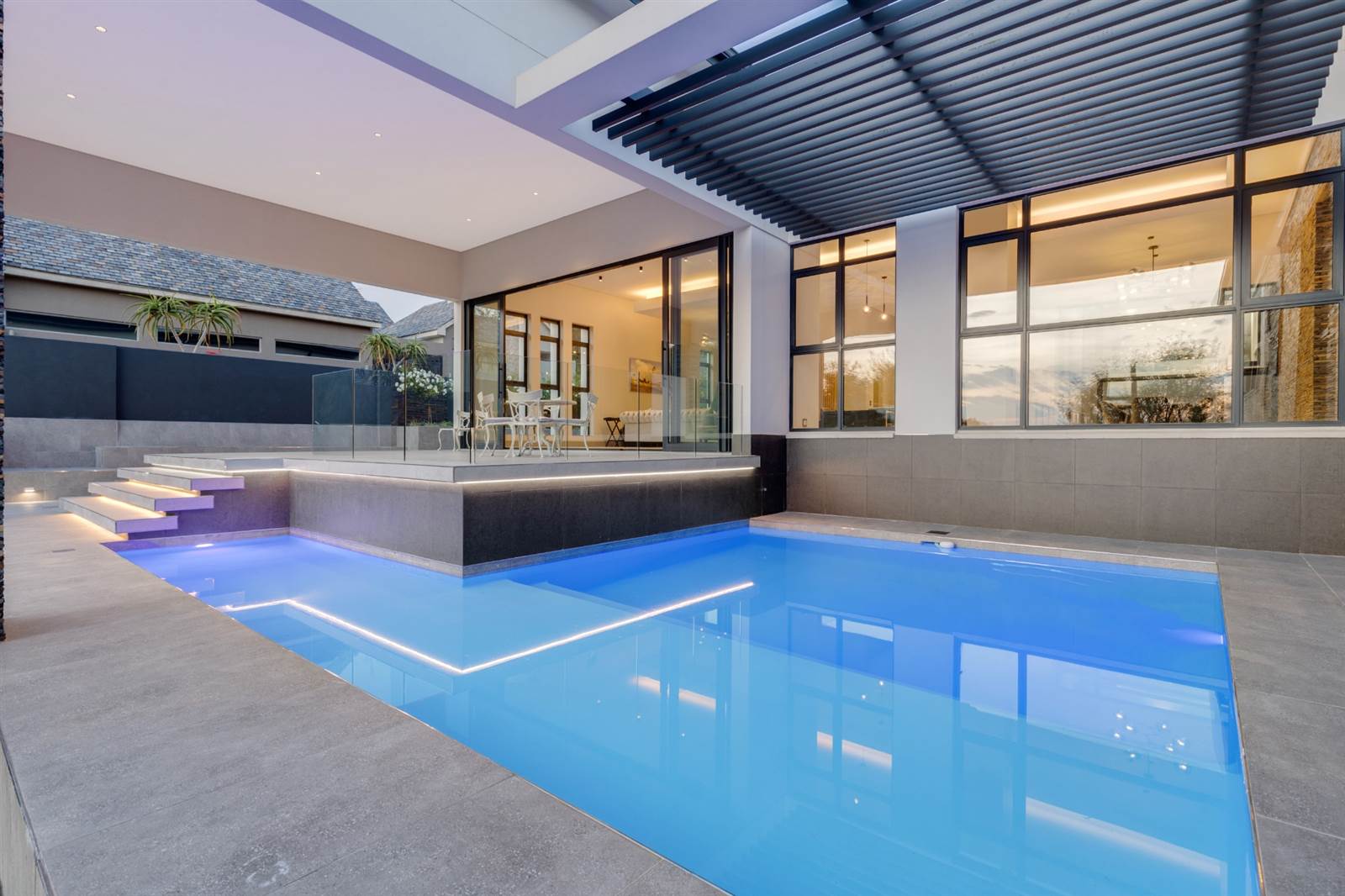 This iconic architectural masterpiece, featured on BBC Listing Jozi Season 2, Episode 9 (DSTV Ch174), located in Waterfall Country Estate North is layered on three levels, crafted with modern design and luxurious finishing to provide opulent living and an entertainment dream home that is “power backed” to ensure uninterrupted enjoyment.