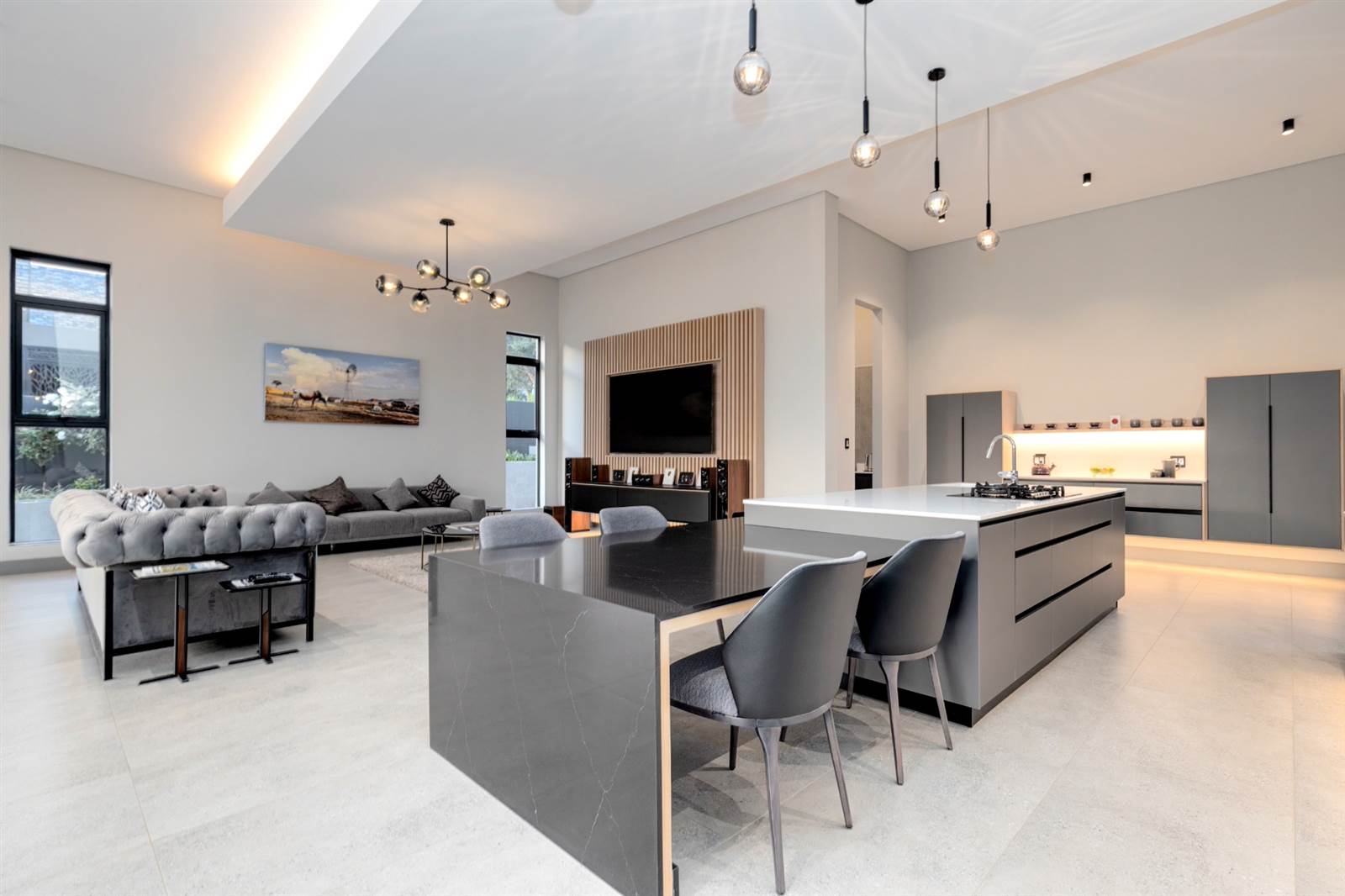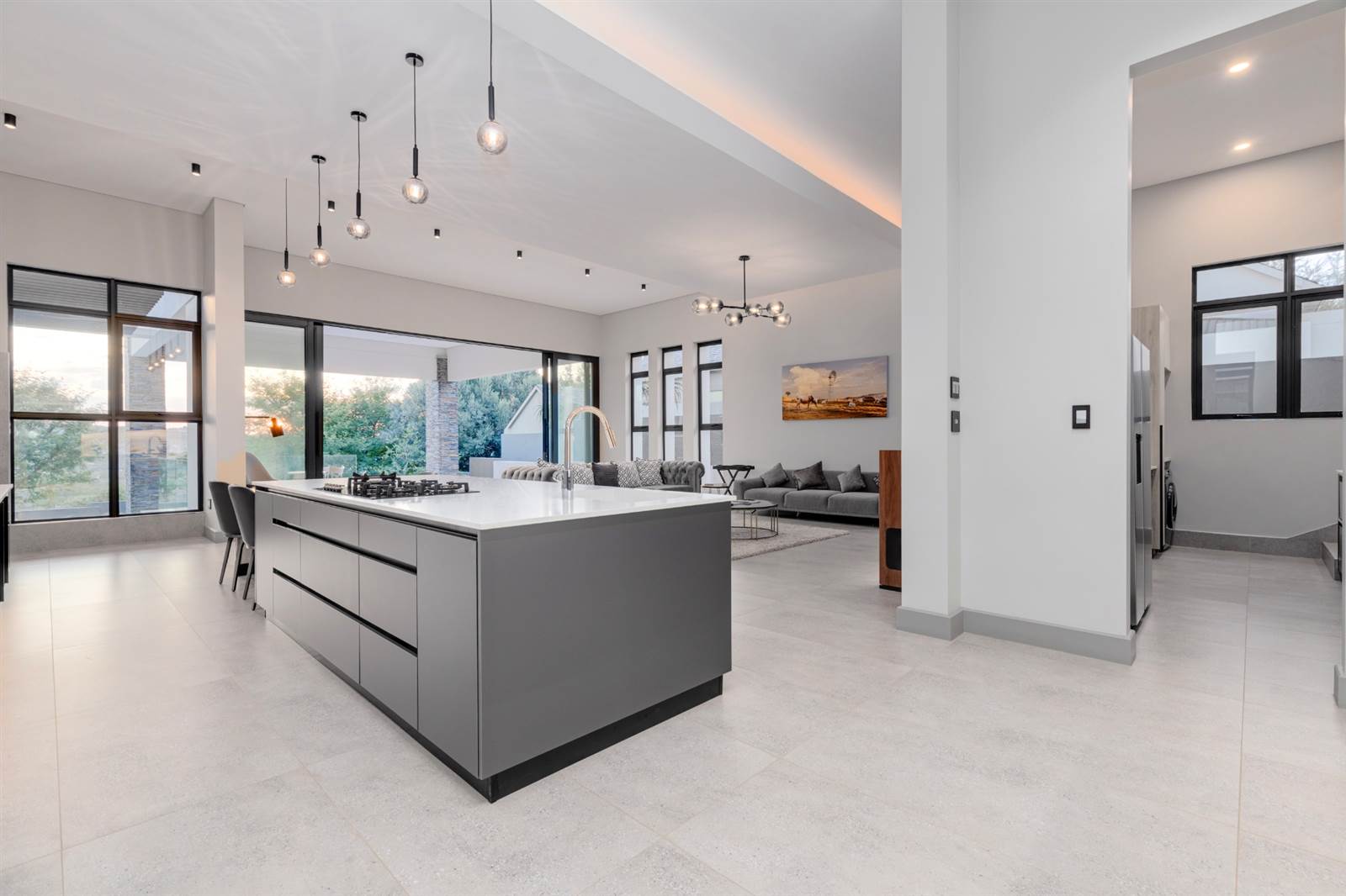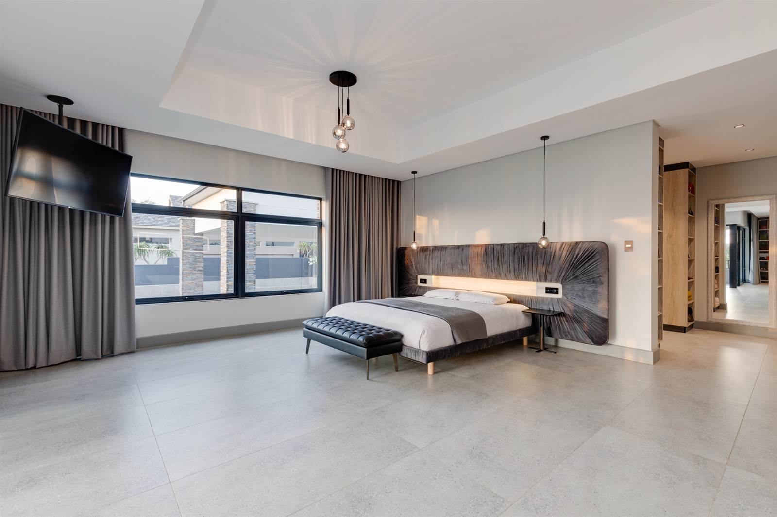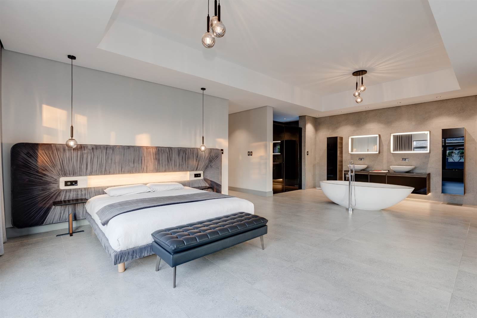 This iconic architectural masterpiece, featured on BBC Listing Jozi Season 2, Episode 9 (DSTV Ch174), located in Waterfall Country Estate North is layered on three levels, crafted with modern design and luxurious finishing to provide opulent living and an entertainment dream home that is “power backed” to ensure uninterrupted enjoyment.