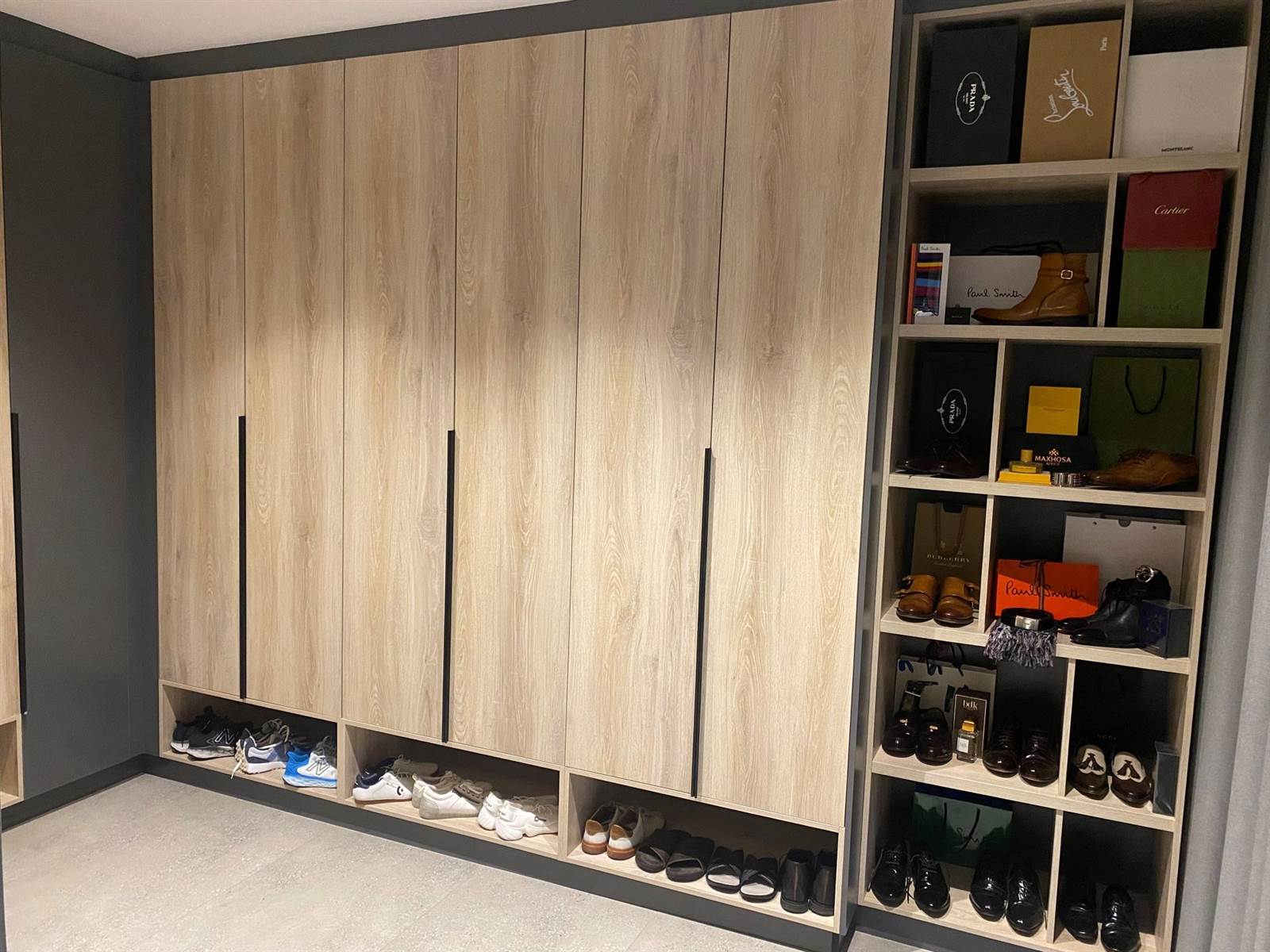 To the right, it flows into a separately positioned formal dining area, a show piece kitchen (supported by a discretely located working kitchen/scullery), both interlinked by a built in server with glass luminated crockery display and a coffee station/area.